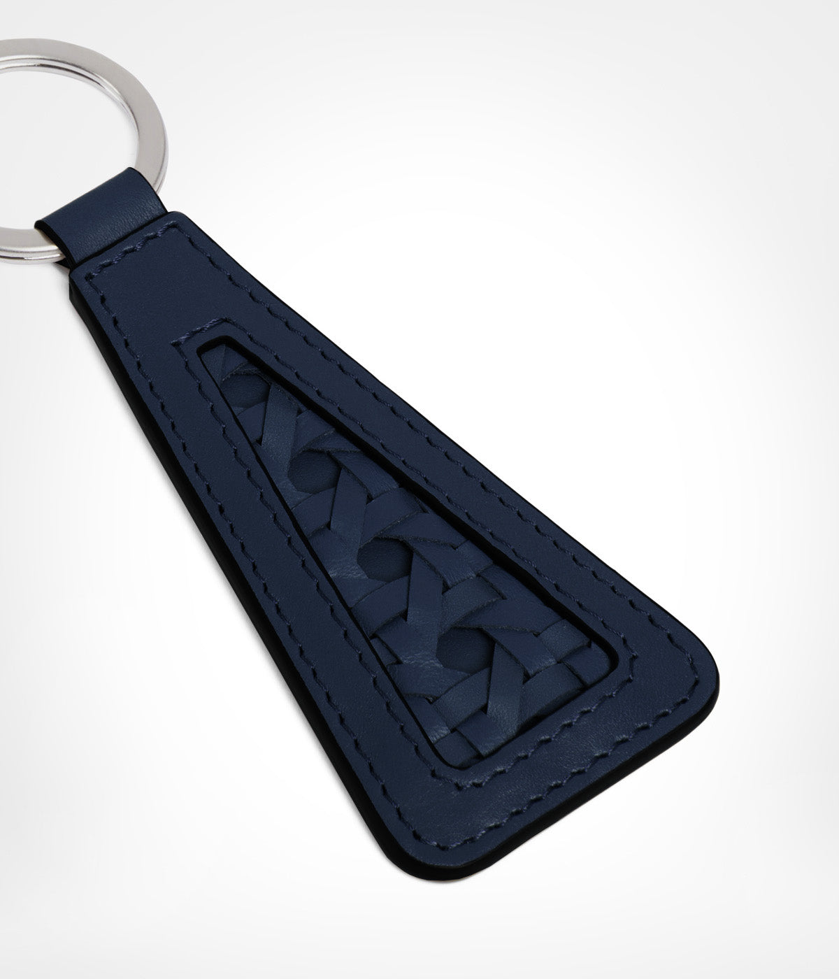 Keyring in calfskin with Paglia di Vienna weave and brass ring in anodized palladium.